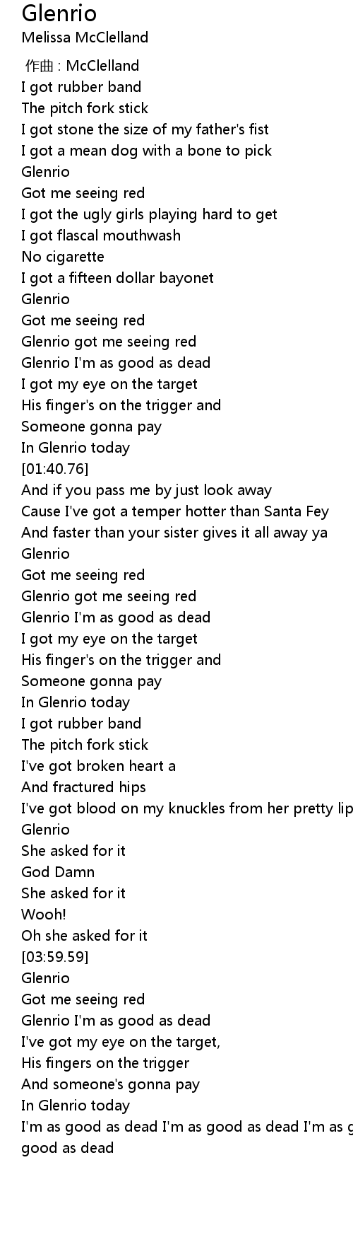| [02:19.58] | Glenrio I' m as good as dead |