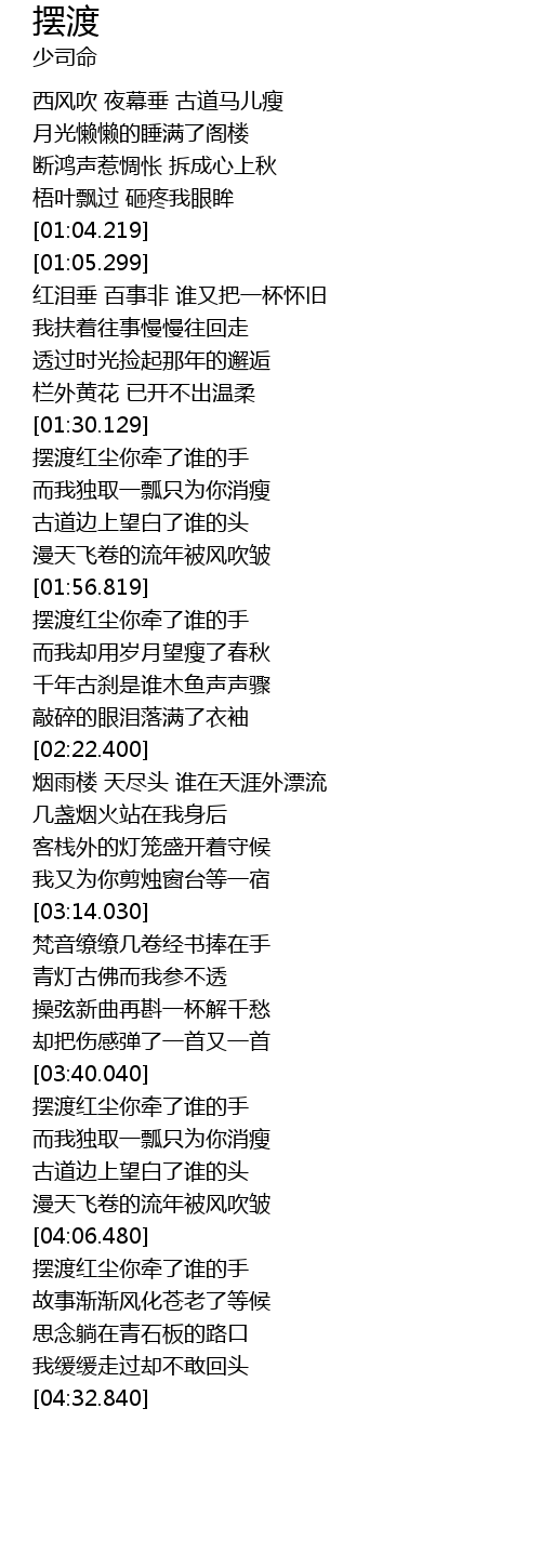| [03:40.780] | 摆渡红尘你牵了谁的手 |