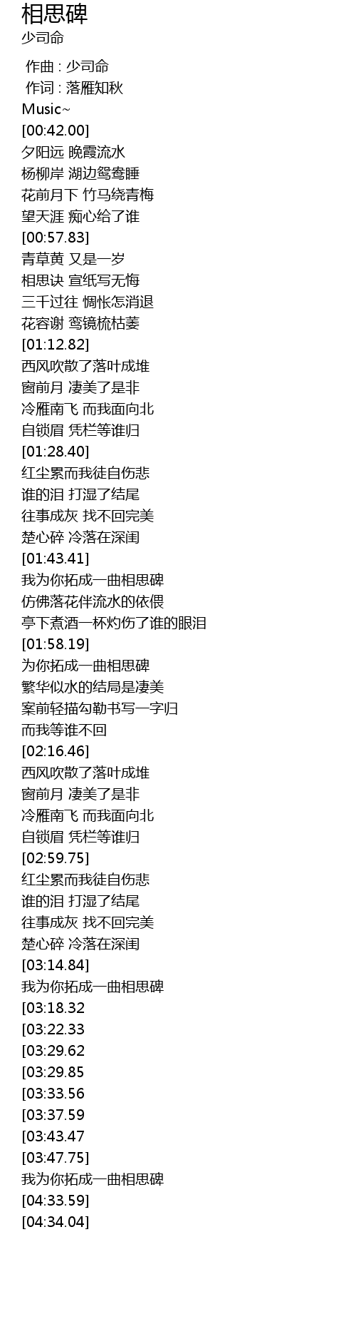 | [04:15.76][03:29.85] | 为你拓成一曲相思碑 |