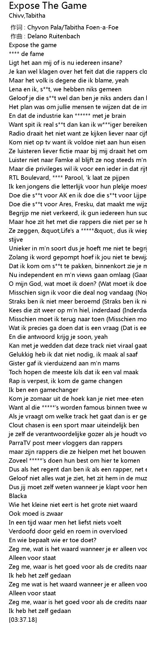 | [00:33.65] | Geloof je die s**t wel dan ben je niks anders dan lame |