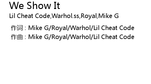 | [00:00.000] | 作词 : Mike G/Royal/Warhol/Lil Cheat Code |