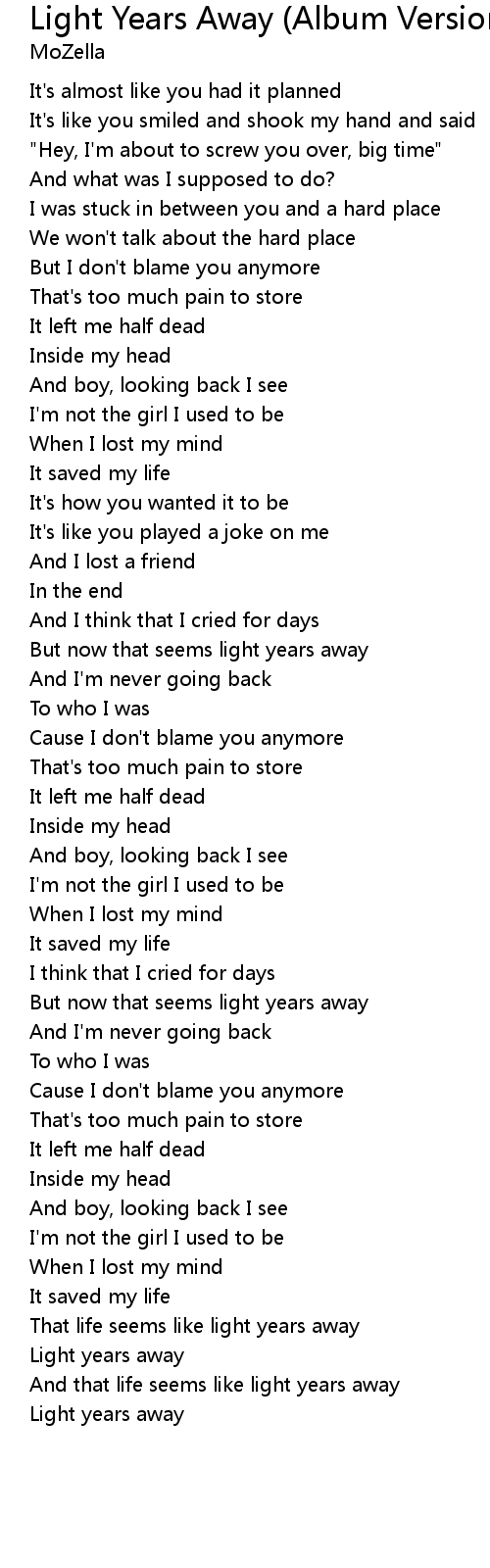 | That life seems like light years away | |