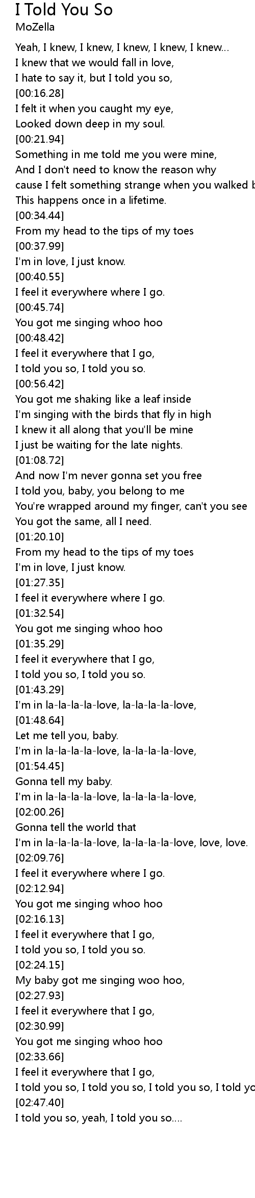 | [02:48.59] | I told you so, yeah, I told you so. |