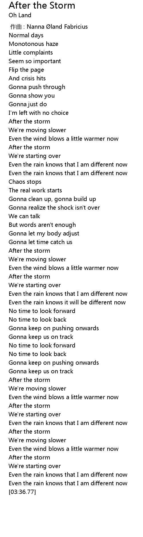 | [03:03.96] | After the storm |