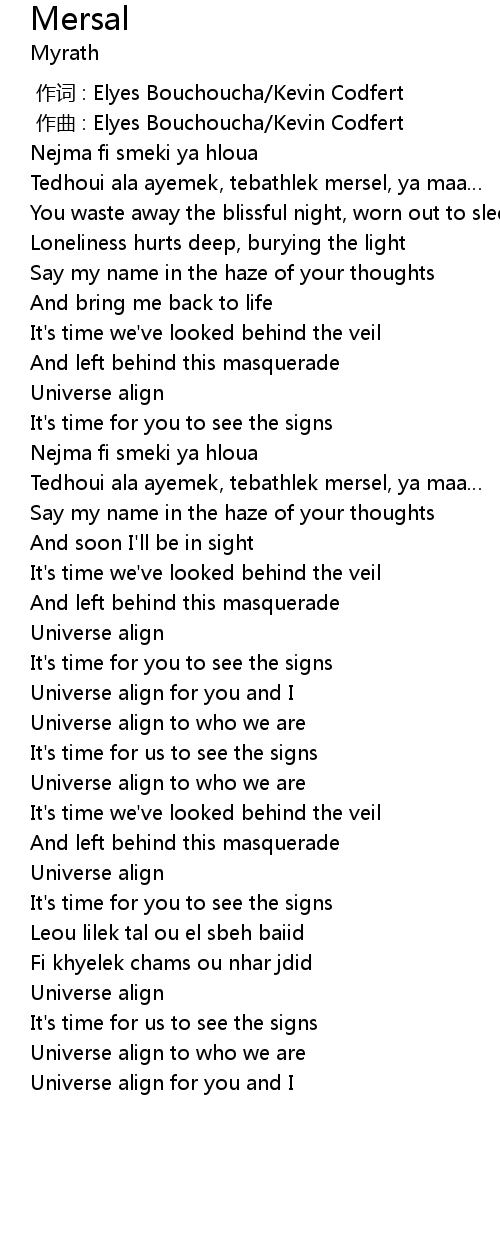 | [00:00.000] | 作词 : Elyes Bouchoucha/Kevin Codfert |