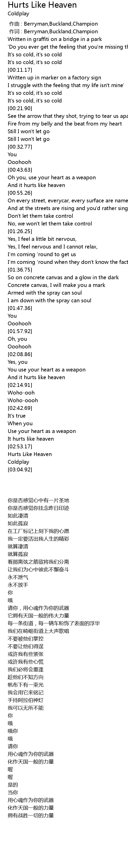 | [02:12.42] | And it hurts like heaven |