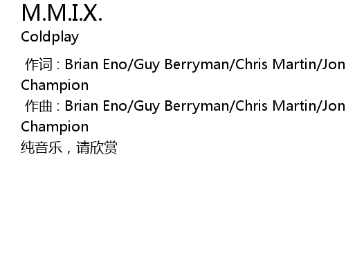 | [00:01.000] | zuo qu : Brian Eno Guy Berryman Chris Martin Jonny Buckland Will Champion |