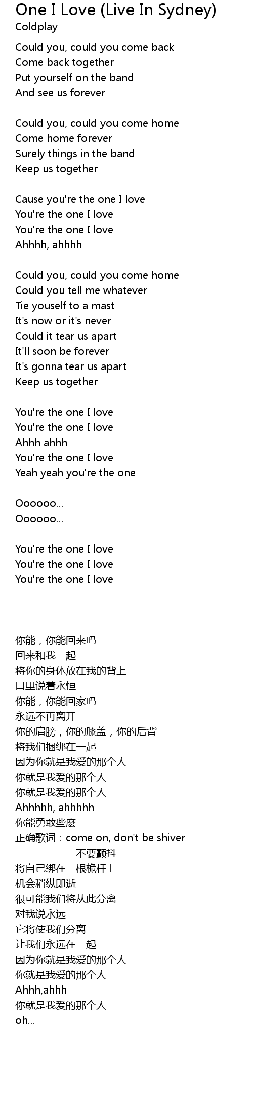 | Cause you're the one I love | |