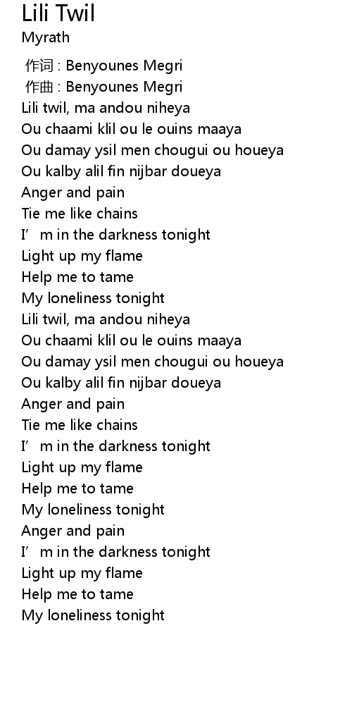 | [01:53.28] | Lili twil, ma andou niheya |