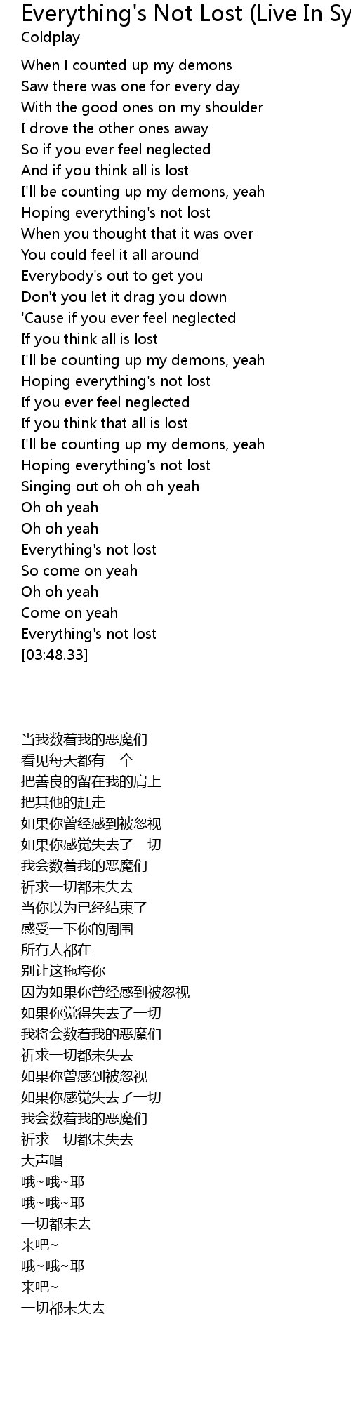 | [00:51.02] | Hoping everything's not lost |