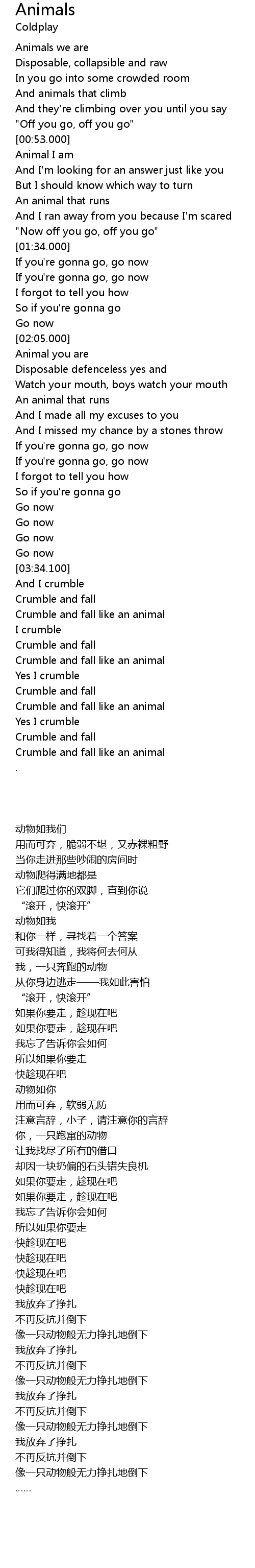 | [03:49.900] | Crumble and fall like an animal |