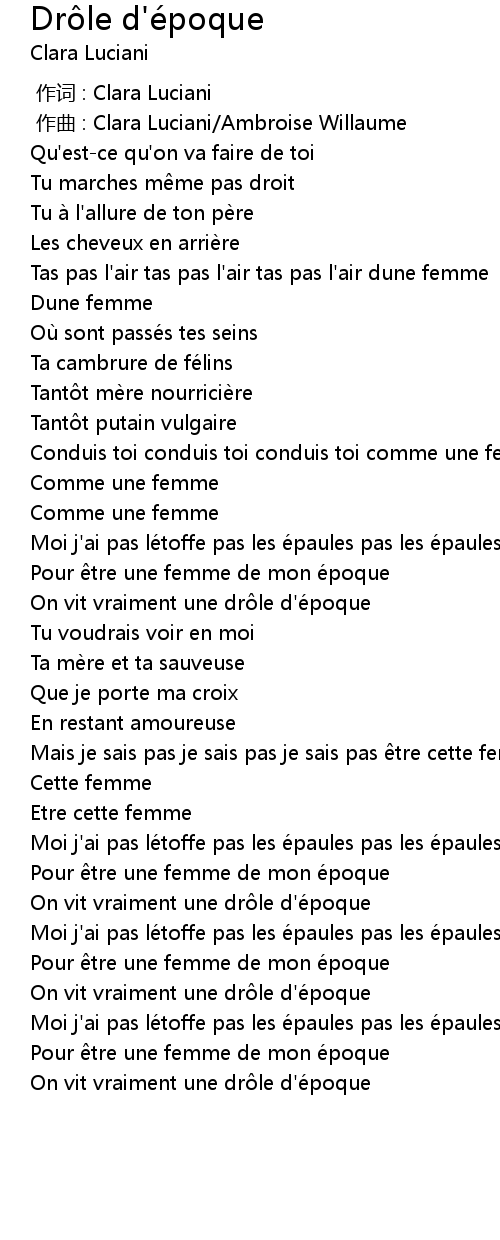 | [03:02.67] | Pour tre une femme de mon e poque |
