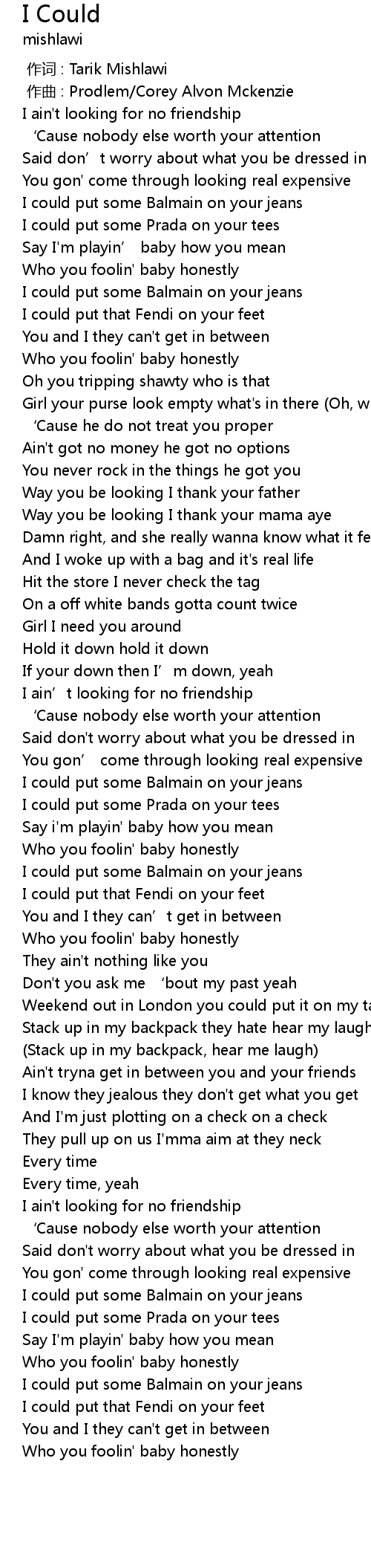 | [01:34.23] | Said don't worry about what you be dressed in |