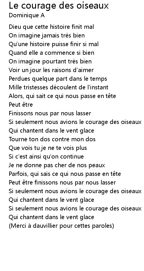 | Song | Le courage des oiseaux |