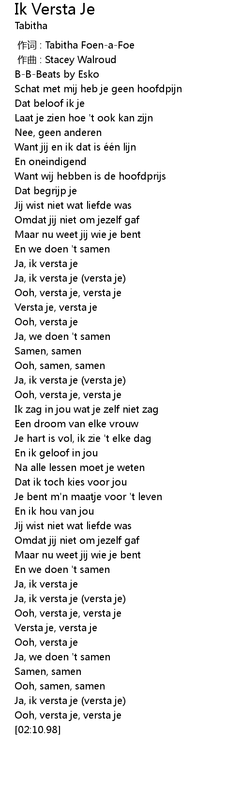 | [02:05.57] | Ja, ik versta je (versta je) |