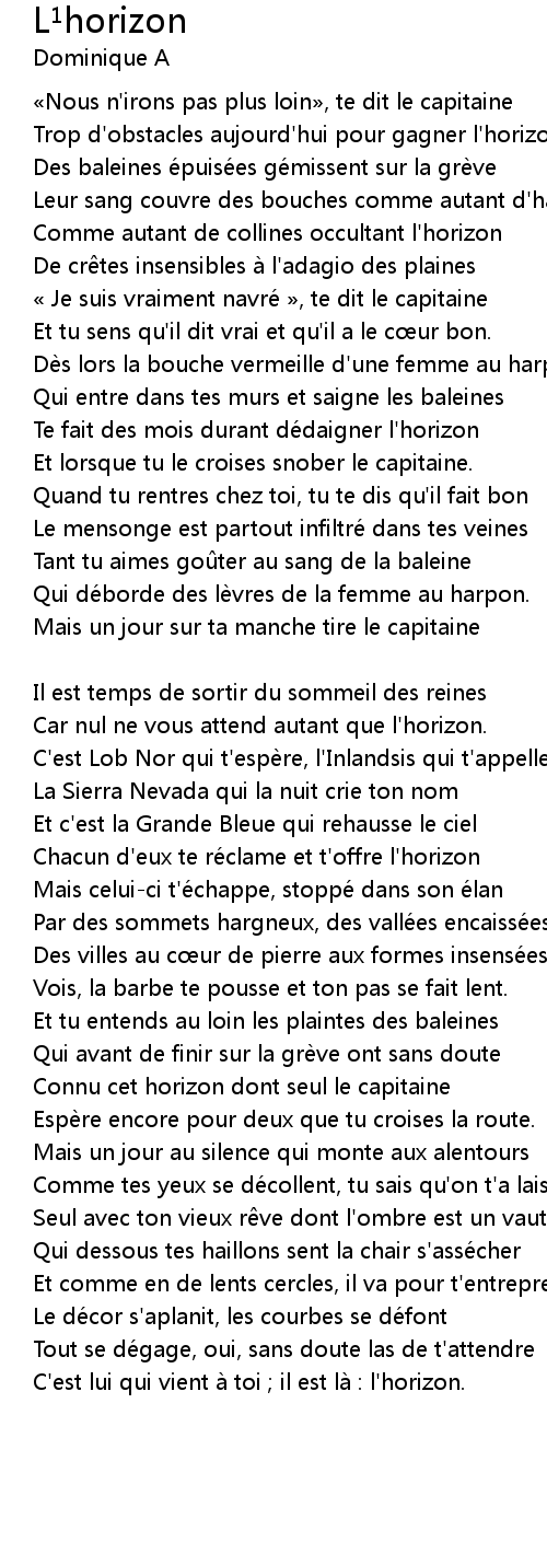 | C' est lui qui vient a toi il est la : l' horizon. |