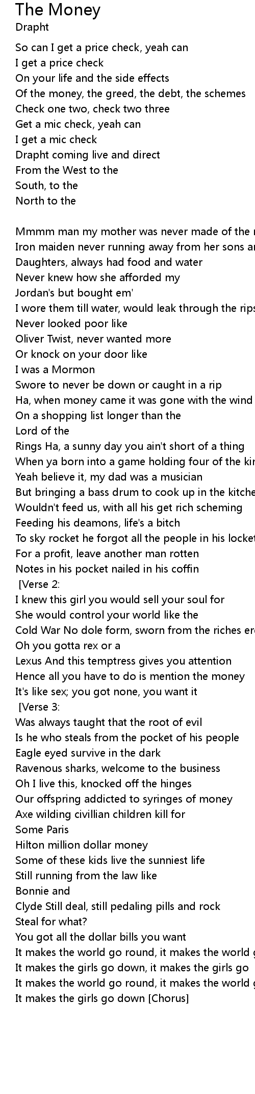 Now she's all up in your wallet for the money so [Chorus] [Verse 3:] |