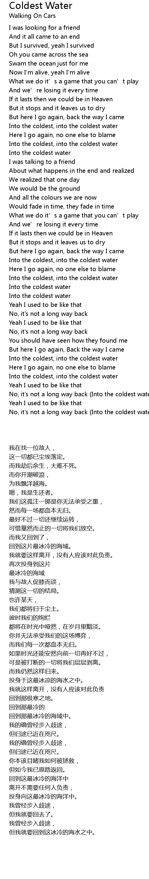 | [00:50.36] | Into the coldest, into the coldest water |