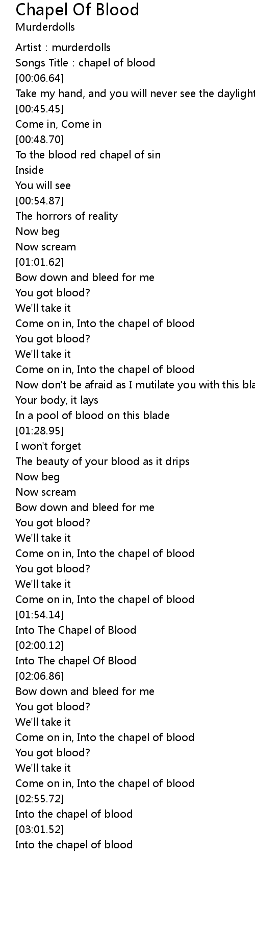 | [02:46.17] | Come on in, Into the chapel of blood |