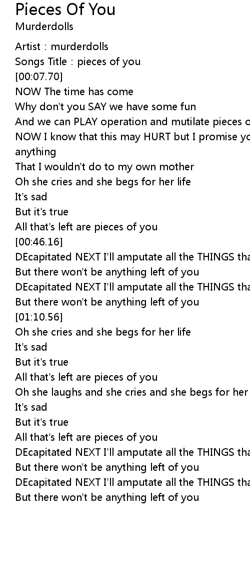 | [00:17.44] | And we can PLAY operation and mutilate pieces of you |