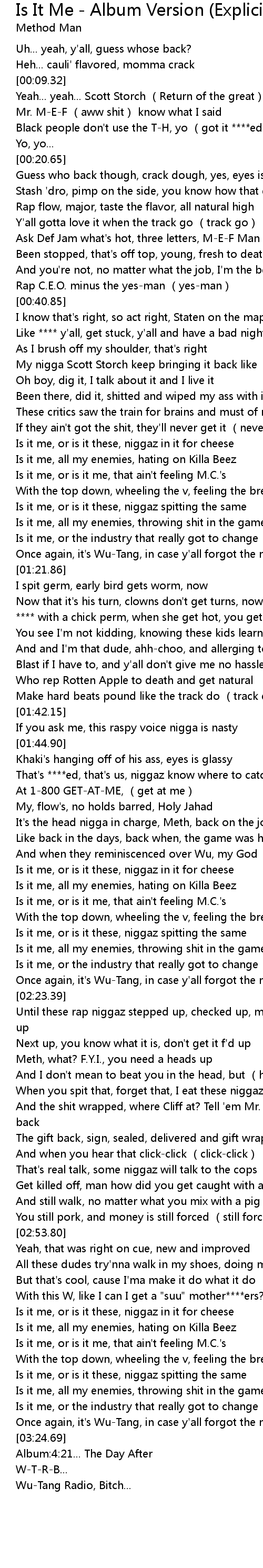 | [03:32.86] | Wu-Tang Radio, Bitch... |