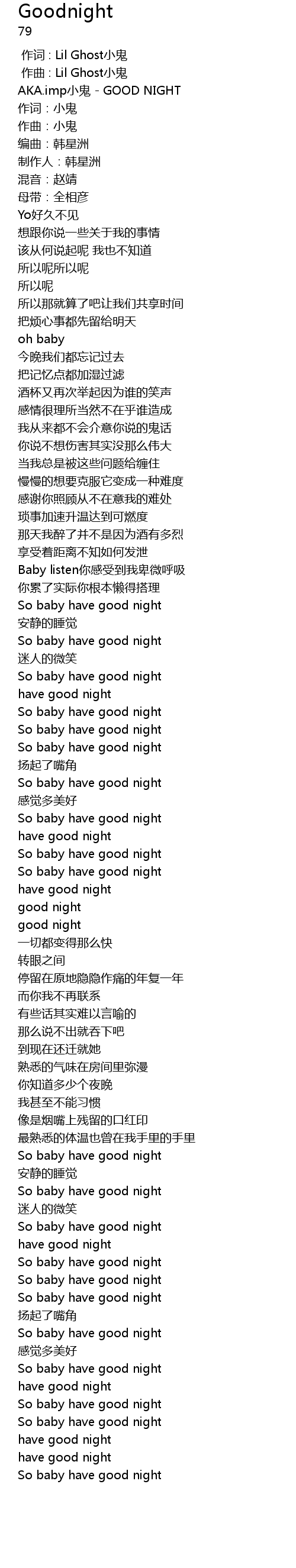 | [00:00.18] | AKA. imp xiao gui GOOD NIGHT |