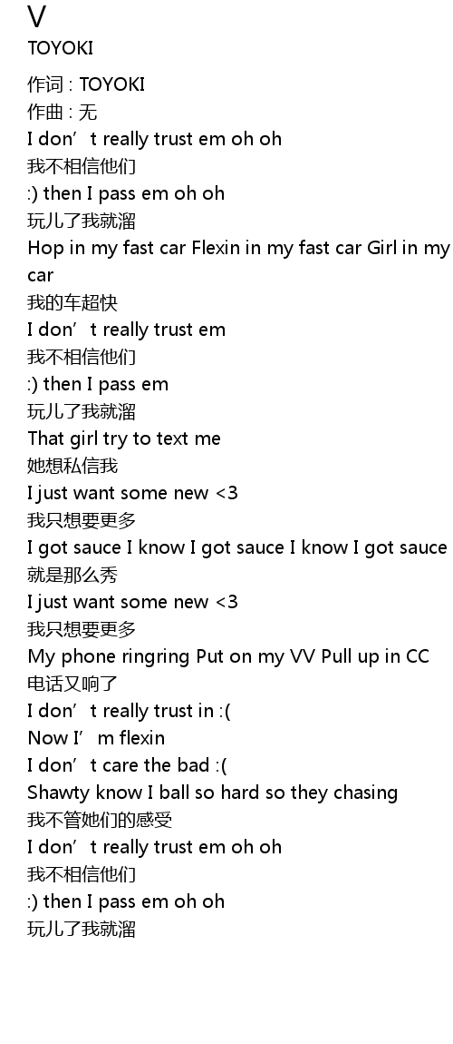 | I don’t really trust em oh oh | |