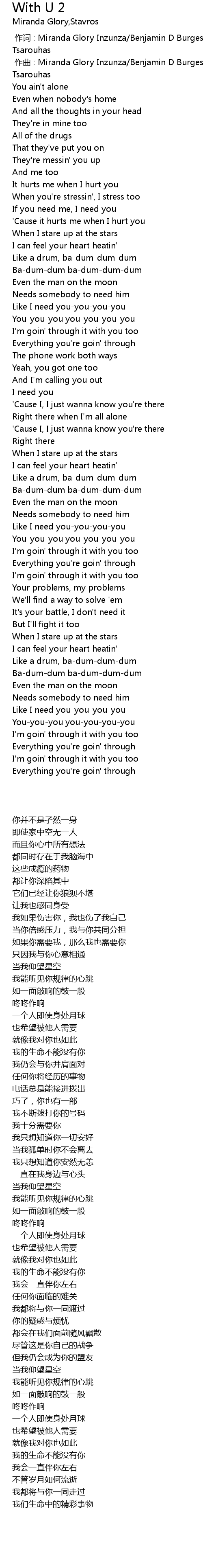 | [00:01.000] | zuò qǔ : Miranda Glory Inzunza Benjamin D Burgess Stavros Adamantios Tsarouhas |