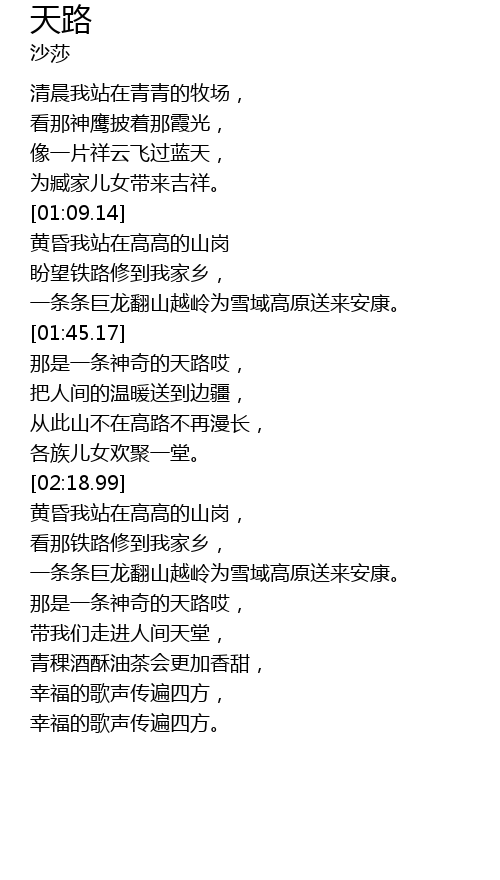 | [01:45.42] | 那是一条神奇的天路哎, |