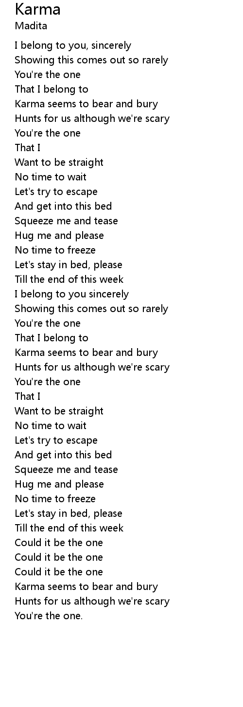 | Karma seems to bear and bury | |