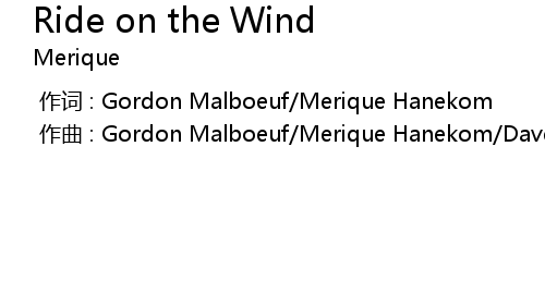 | [00:00.000] | 作词 : Gordon Malboeuf/Merique Hanekom |