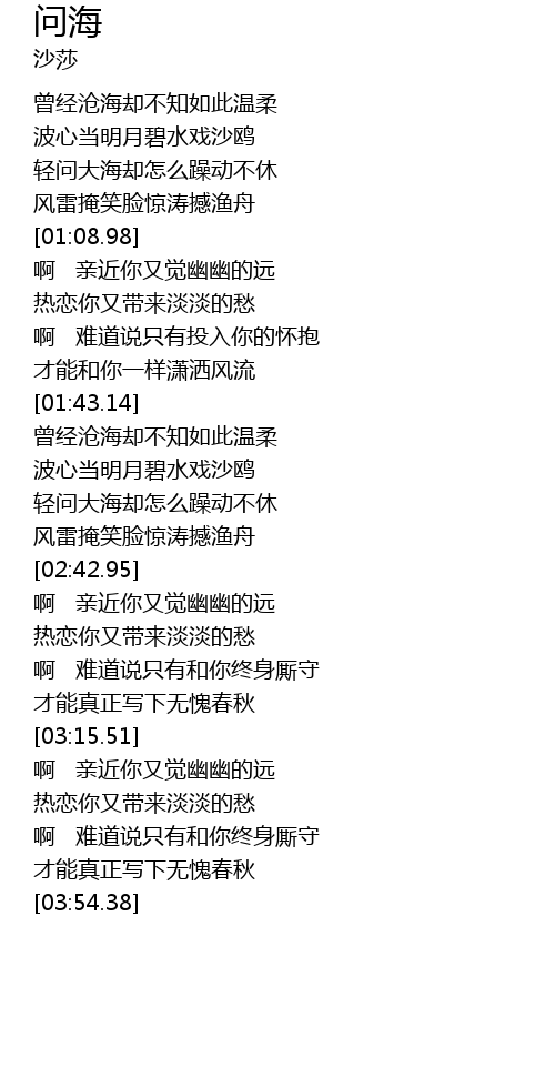 | [00:47.93] | qīng wèn dà hǎi què zěn me zào dòng bù xiū |