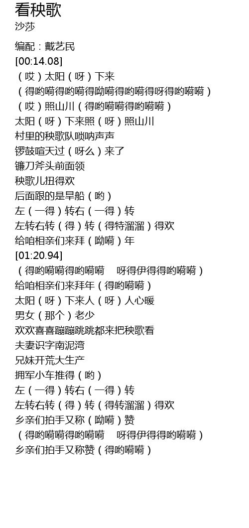 | [01:11.99] | 秧歌儿扭得欢 |