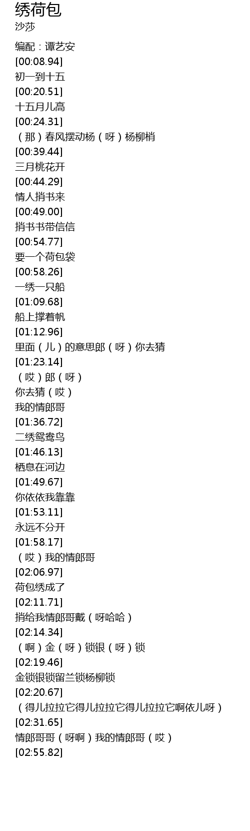 | [02:11.51] | 荷包绣成了 |