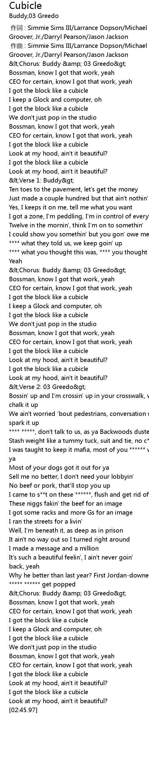 | [02:16.38] | lt Chorus: Buddy amp 03 Greedo gt |