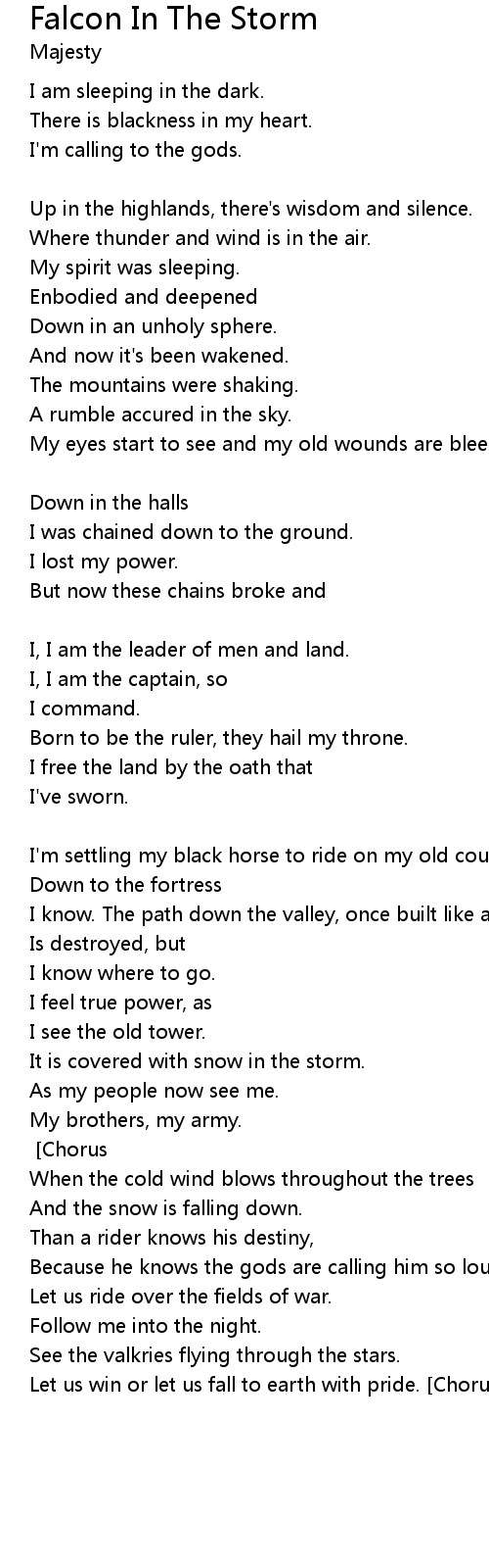 | Like a falcon in the storm. [Verse 2] | |