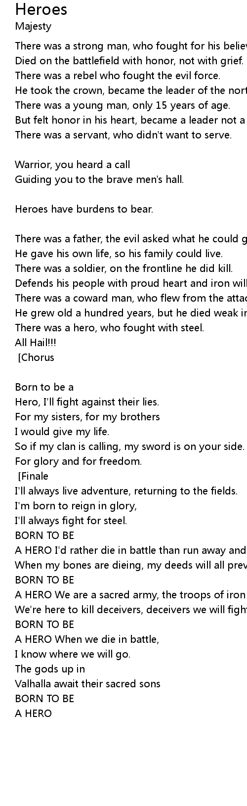 Well, he died young but for thousand years they told his tale. [Bridge] [Chorus] |