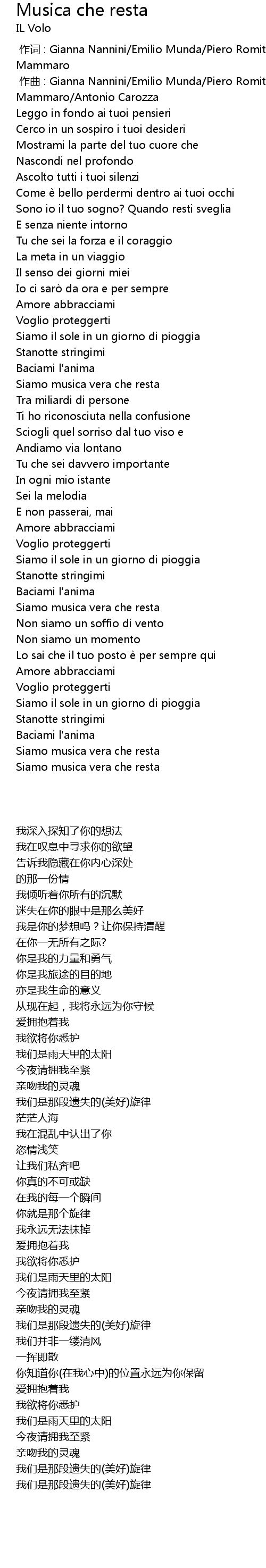 | [00:01.000] | zuo qu : Gianna Nannini Emilio Munda Piero Romitelli Pasquale Mammaro Antonio Carozza |