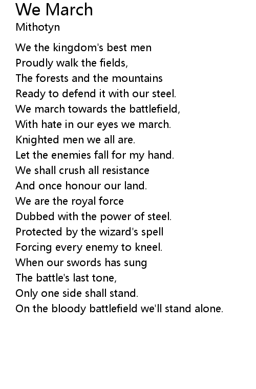 We march towards the battlefield, |