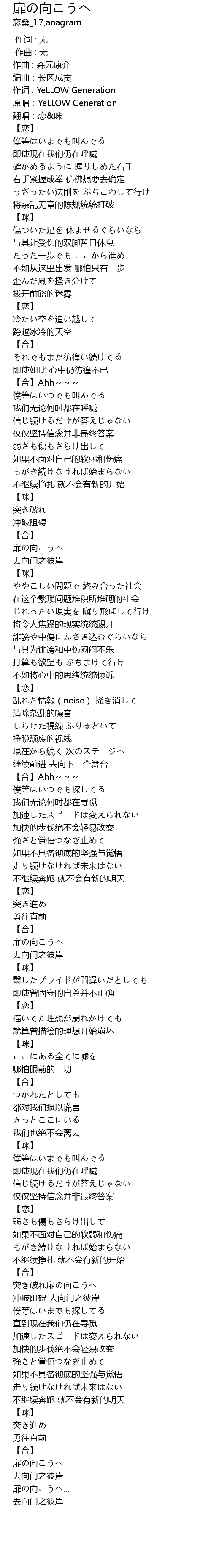| [00:25.207] | うざったい法則を ぶちこわして行け |