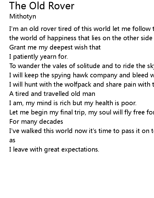 I'm an old rover tired of this world let me follow the whirlpool of life into the world of happiness that lies on the other side of death. |