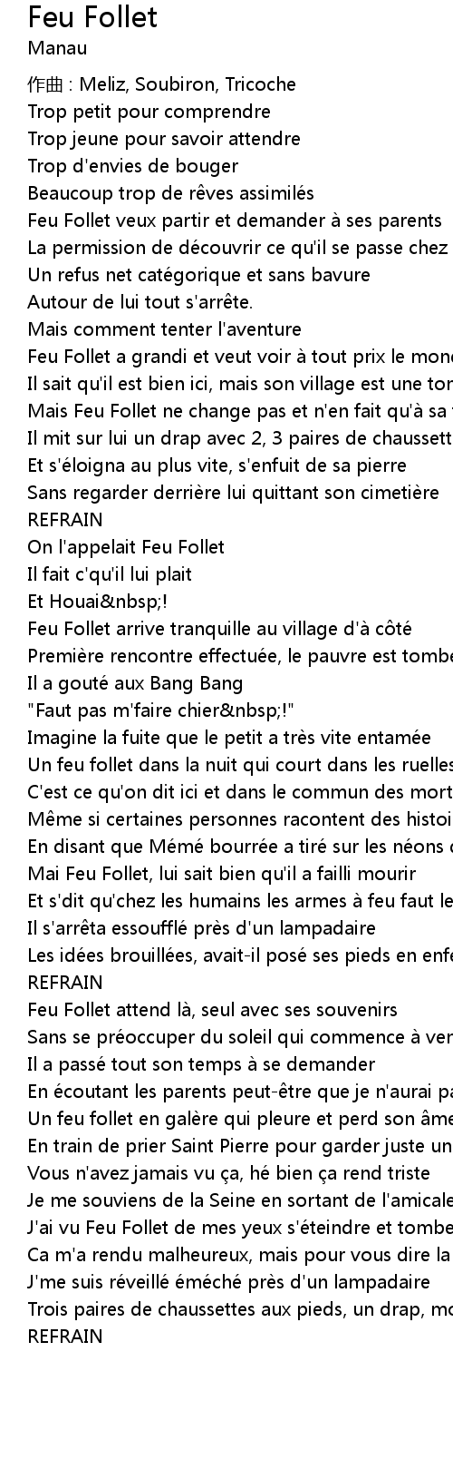| Mai Feu Follet, lui sait bien qu' il a failli mourir | |