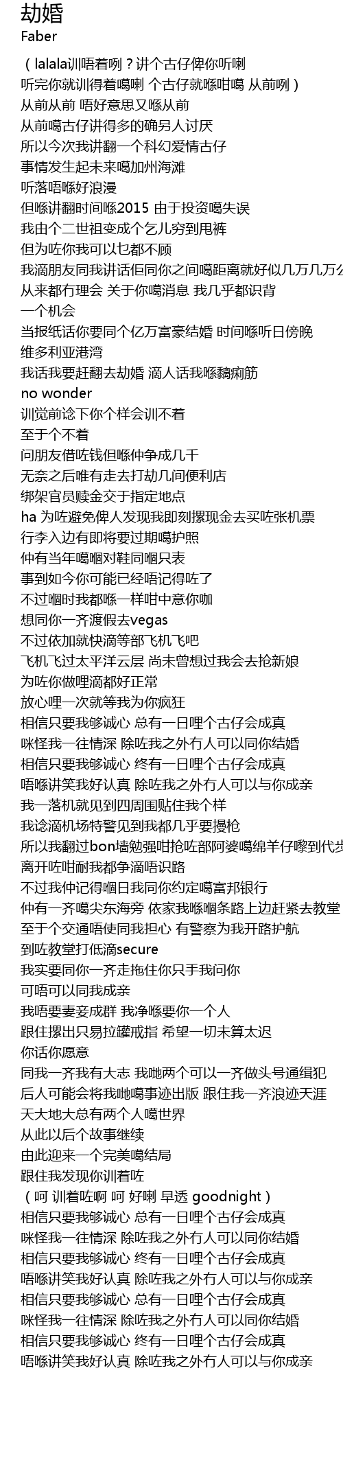 | [00:55.80] | 我话我要赶翻去劫婚 滴人话我喺黐痢筋 |