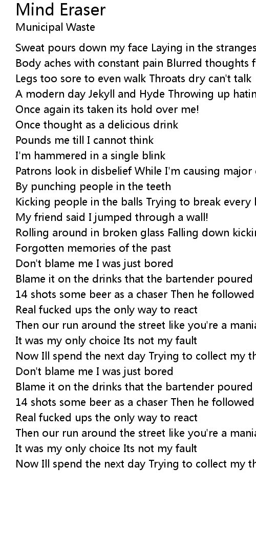 Body aches with constant pain Blurred thoughts fill my brain |