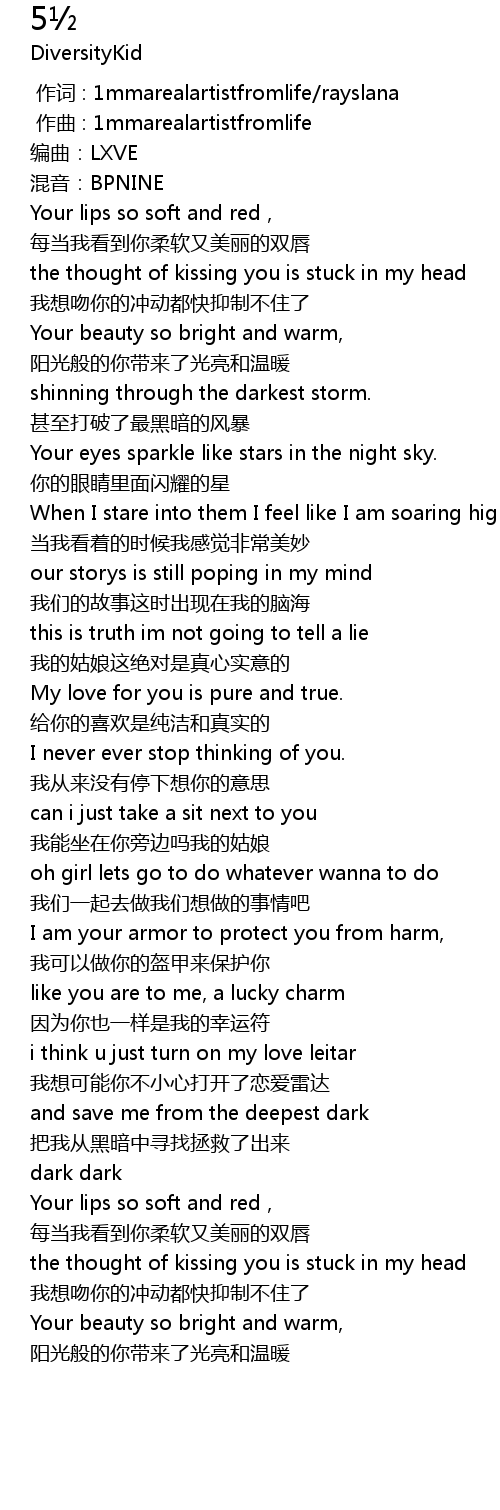 | [00:22.700] | the thought of kissing you is stuck in my head |