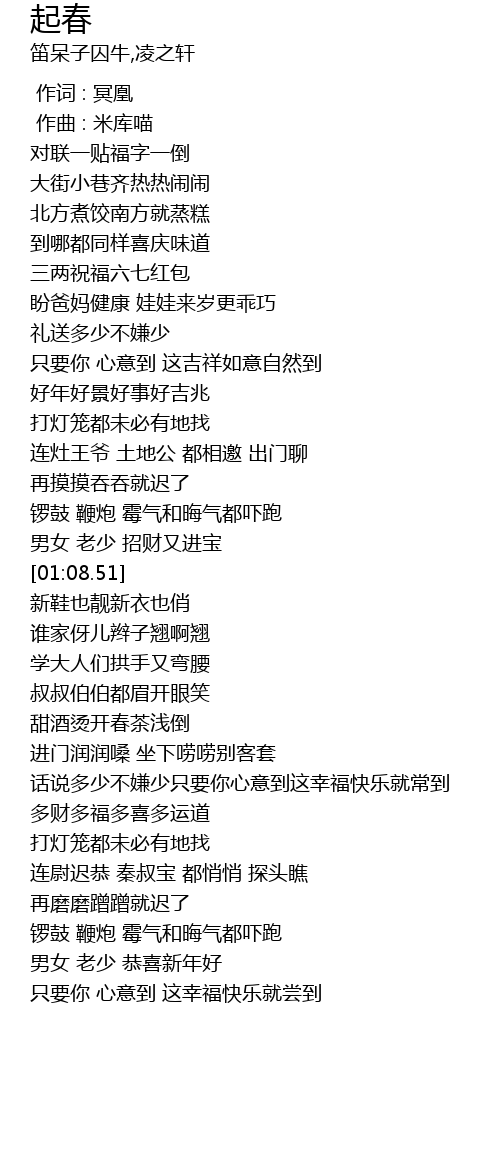 | [00:13.62] | 对联一贴福字一倒 |