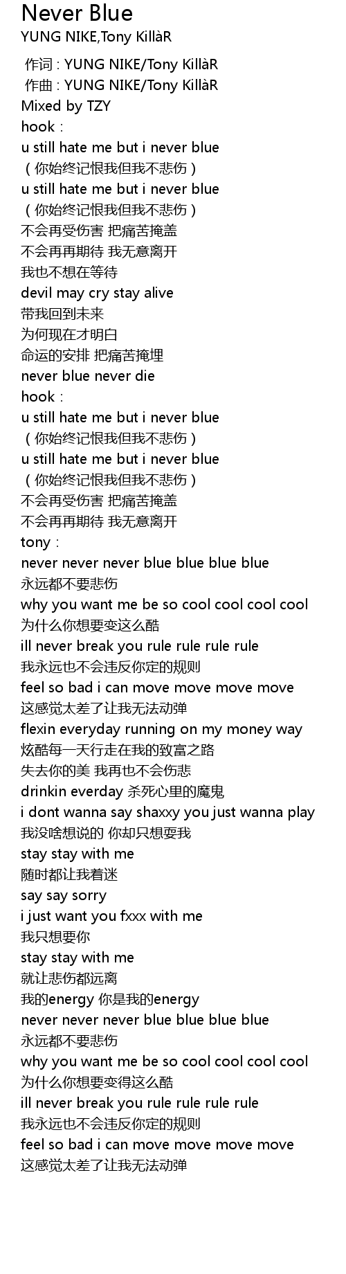 | [00:00.000] | zuo ci : YUNG NIKE Tony Killa R |