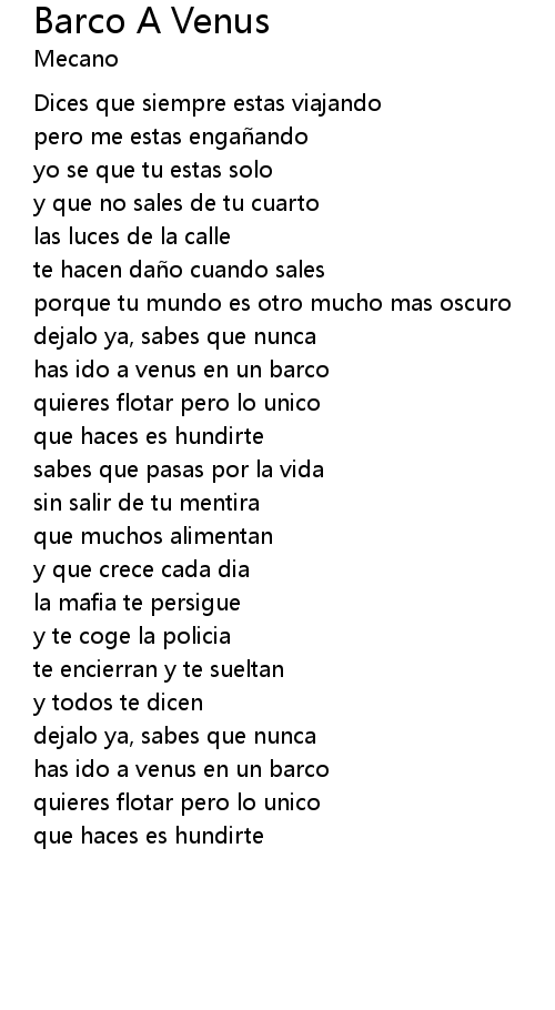 | Song | Barco A Venus |