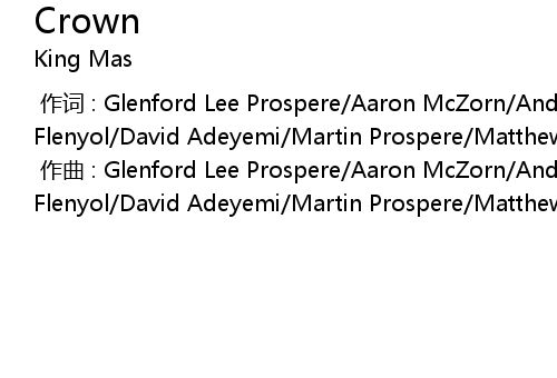 [00:00.000] 作词 : Glenford Lee Prospere/Aaron McZorn/Andres A Wilson/Benjamin Flenyol/David Adeyemi/Martin Prospere/Matthew Jerome/Nko Fallou Fall
