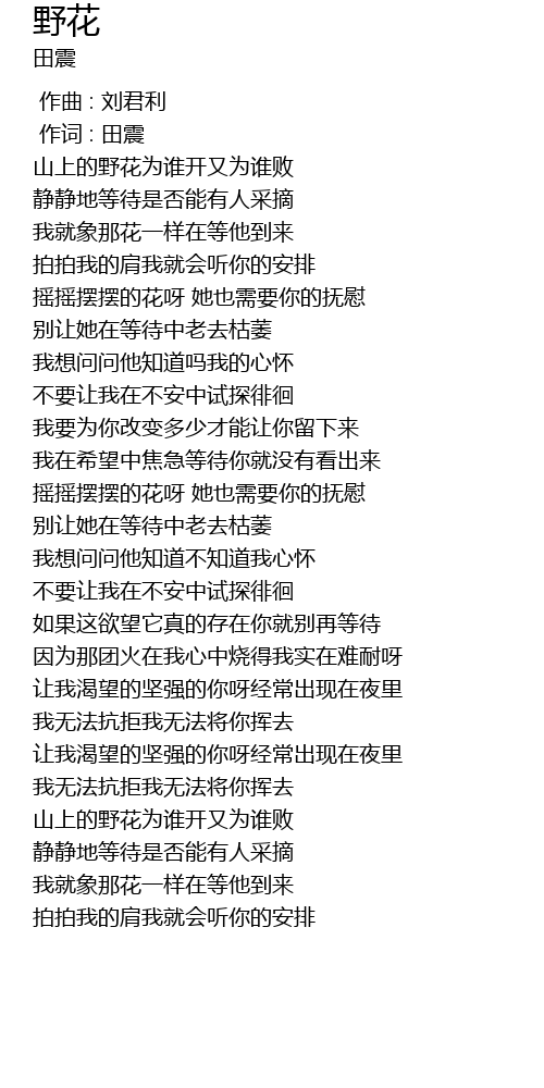 | [00:13.000] | 山上的野花为谁开又为谁败 |